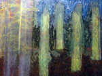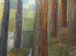 2011Naast Bos één, of beter gezegd 'onder Bos één', het meest interessante bos. Ik voelde het massieve van de twee rode stammen, de ingedroogde lijm door het pastelkrijt heen.